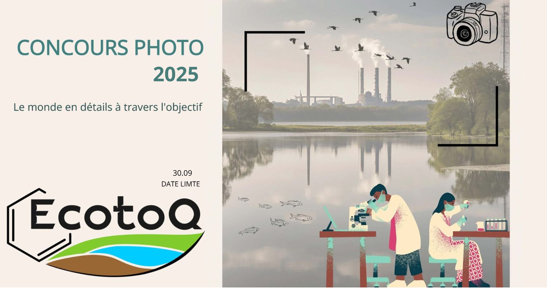 Cette initiative vise à mettre en lumière les projets des étudiant(e)s de la communauté EcotoQ, non pas par des mots, mais à travers des images. Les photos soumises devront refléter de manière originale et créative les recherches en lien avec l’écotoxicologie, illustrant le quotidien des participant(e)s, que ce soit sur le terrain ou en laboratoire.